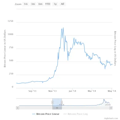 30. novembra v roku 2013 sa obchodoval za 1166 dolárov, keď potom ku 14. januáru 2015 klesol na 170 dolárov , čo znamenalo ďalší podstatný pokles o 85%.