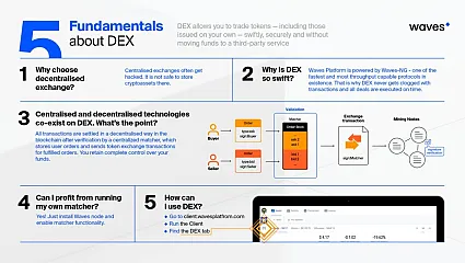Nižšie priložená infografika opisuje všetko podstatné. DEX je decentralizovaná burza a o výhodách tohto typu búrz sme už na našom magazíne publikovali viacero článkov. Pre základnú predstavu vám odporúčam prečítať si: Čím sa odlišujú centralizované a decentralizované burzy.