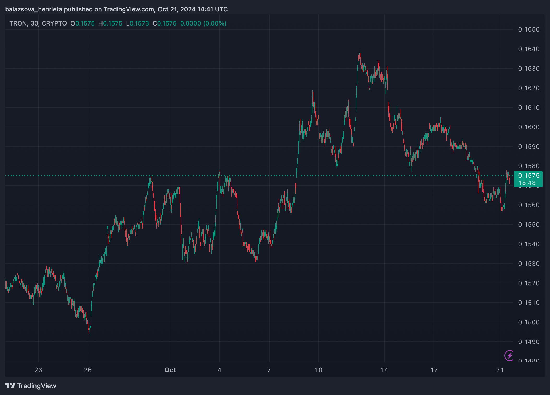 Vývoj ceny TRX za posledný mesiac. Zdroj: TradingView