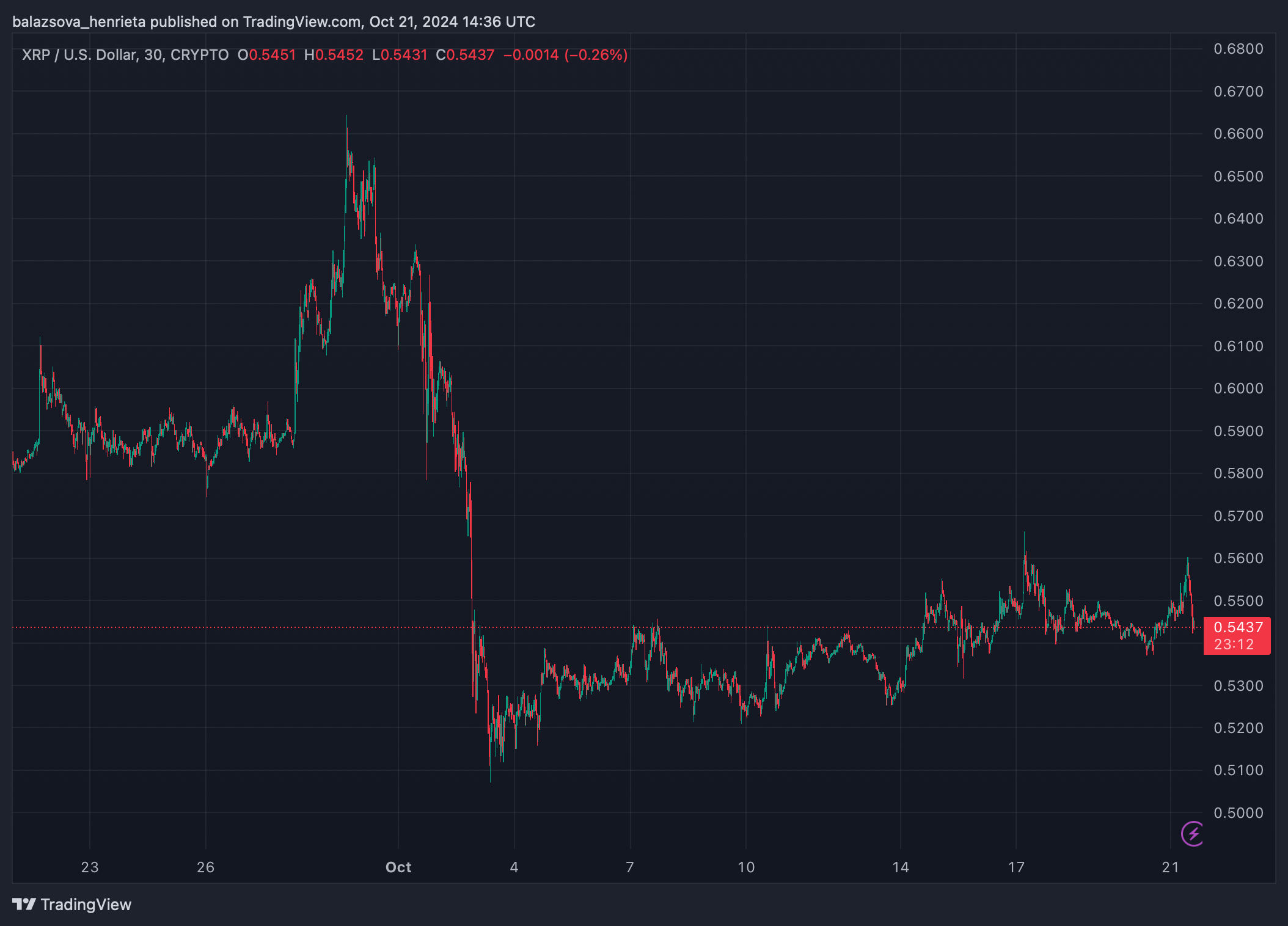 Vývoj ceny XRP za posledný mesiac. Zdroj: TradingView