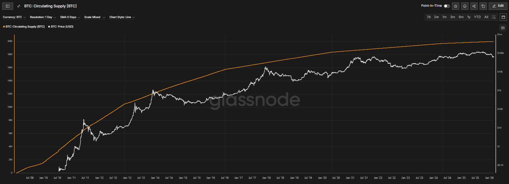 Bitcoin má síce pevne stanovený maximálny limit 21 miliónov mincí, no reálne dostupná ponuka je výrazne nižšia. Do obehu sa podľa CoinMarketCap už dostalo približne 19,99 milióna BTC, avšak milióny z nich sa pravdepodobne navždy stratili. Dôvodom sú zabudnuté privátne kľúče, zničené hardvérové peňaženky, úmrtia majiteľov bez prístupu k údajom či chyby pri odosielaní transakcií.