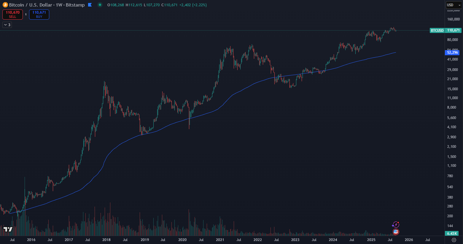 Aj keď sa 200 WMA považuje za konečné dno, Bitcoin sa pod túto úroveň dostal v niekoľkých prípadoch – napríklad počas „krypto zimy” v roku 2022 alebo počas slávneho „Čierneho štvrtka” v roku 2020. Tieto momenty však vždy predstavovali dlhodobé trhové minimá. Naopak, keď cena Bitcoinu prekročí 200 WMA, často signalizuje počiatok dlhodobého vzostupu.
