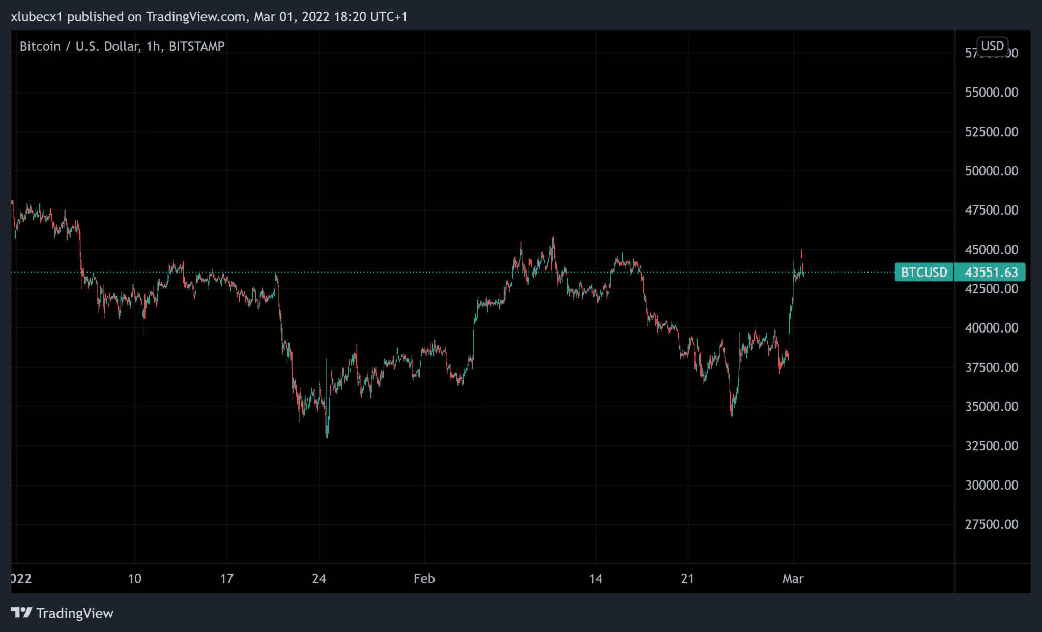 Cena Bitcoinu sa posledným rastom dostala takmer na mesačné maximum. Po prvýkrát od septembra 2021 cena nekoreluje so štandardnými trhmi a nereaguje na geopolitické fundamenty. Aké môžu byť dôvody rastu a bude ďalej Bitcoin pokračovať v takto nastavenom trende?