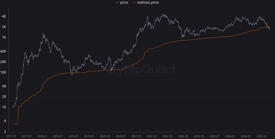 Ethereum klesol pod dôležitú hranicu 1 500 dolárov, pričom viacero technických indikátorov naznačuje, že ETH môže zažiť ešte hlbšiu korekciu. Podľa údajov kryptomenového magazínu Cointelegraph, cena Etherea sa prepadla pod svoju realizovanú cenu – metriku, ktorá prepočítava trhovú hodnotu kryptomeny na základe ceny, za ktorú sa každá minca naposledy pohla na blockchaine.