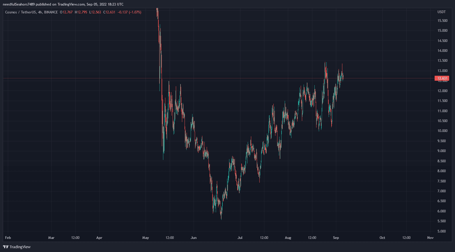 Cosmos utrpel väčší cenový šok ako ostatné kryptomeny, predovšetkým vďaka Terre, ktorá bola vybudovaná na jeho blockchaine. Obe siete vzájomne spolupracovali, čo sa po prepade stablecoinu UST a kryptomeny LUNA negatívne podpísalo na cene Cosmosu. Podľa Coin Bureau sieť naznačuje, že sa kryptomena z prepadu pozviechala a od svojho minima na takmer 5 dolároch ATOM stále rastie. Pokiaľ v najbližších týždňoch nenastane ďalší pokles, ATOM môže ďalej rásť, pretože on-chain dáta ukazujú znížený záujem o predaj kryptomeny.