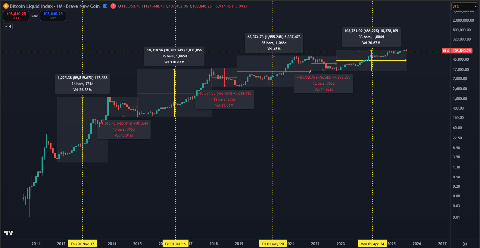 Bitcoin v celej svojej histórii opakovane ukázal rovnaký vzorec správania. Po prudkých nárastoch nasledovali korekcie, ktoré mnohí považovali za začiatok konca. Realita však zakaždým priniesla nový rastový impulz. Každý výraznejší pokles ceny Bitcoin časom nielen vyrovnal, ale prekonal novými maximami.