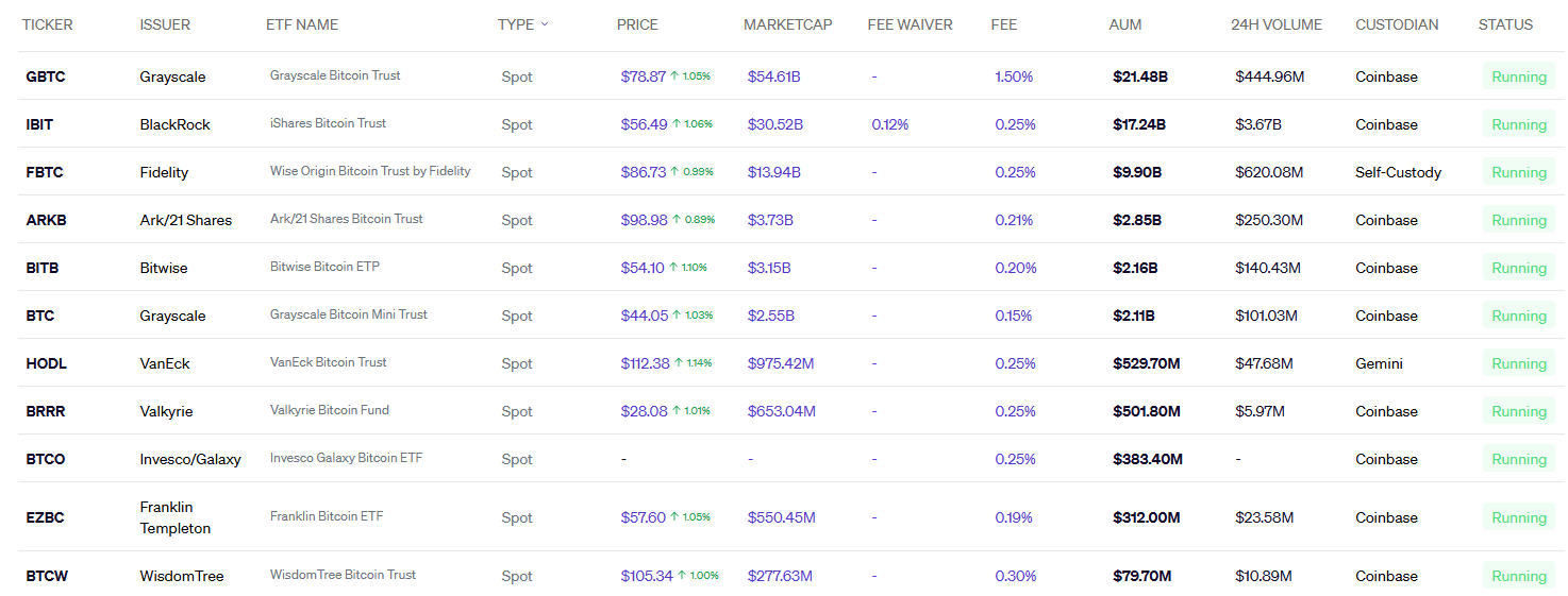Rok 2024 sa nesie v znamení partnerstiev medzi kryptomenovými spoločnosťami a finančnými gigantmi, ako sú Visa či BlackRock. Sme svedkami masívnych investícií týchto inštitúcií do kryptomenových ETF fondov, čím sa sprístupňujú digitálne aktíva širšiemu publiku. Zoznam týchto ETF môžete vidieť na obrázku nižšie na základe údajov Blockworks.