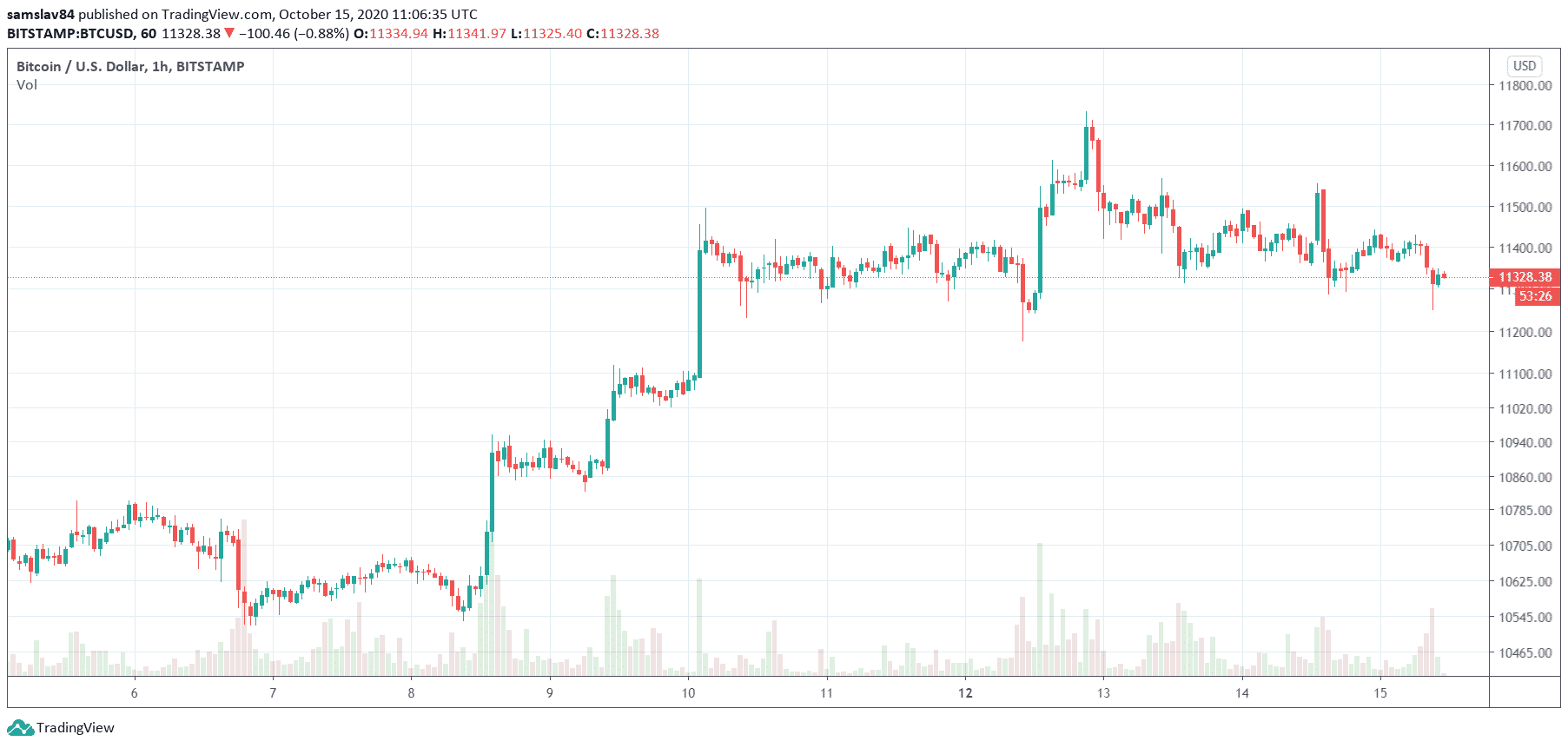 „Situácia je takáto. Ak sa udržíme nad vyznačeným supportom (cca 11 300 $), Bitcoin bude pokračovať smerom hore. Ak nie, otestujeme hladiny 10 900 $, či dokonca 10 600 $.“