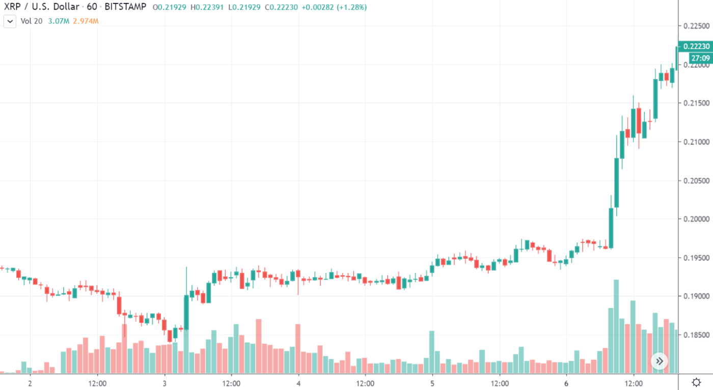 Zdá sa, že udalosťou, ktorá spustila dnešný rast, je predstavenie XRP Futures na burze Binance. Vďaka tomu dostal token zvýšenú pozornosť zo strany obchodníkov, články na veľkých weboch a to v konečnom dôsledku mohlo byť katalyzátorom aktuálneho rallye.