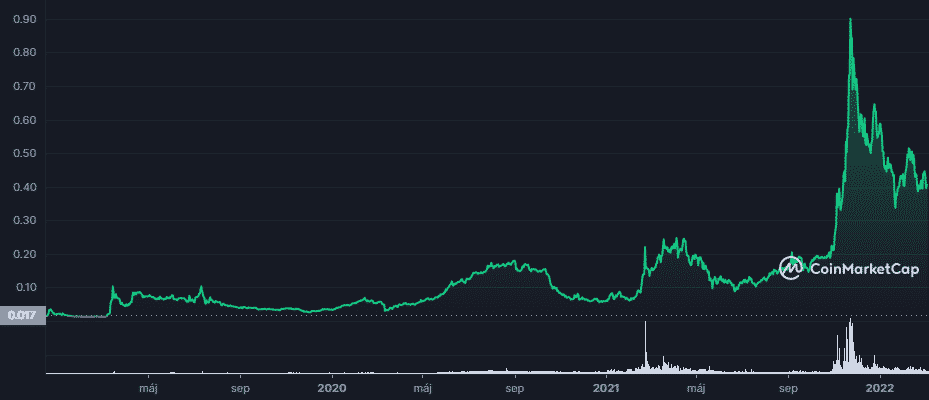 Cronos, resp. CRO, premenovaný altcoin burzy Crypto.com, je rovnako v dlhodobej rastúcej trajektórii. Od zalistovania na burzu urobil altcoin 40-násobné zhodnotenie a zatiaľ počas každého roka sa cena pohla na nové historické maximum. Za cenovým rastom môže byť hlavne kvalitný marketing burzy a rozvoj ekosystému. Za posledné 3 roky išlo pravdepodobne o najrýchlejšie rastúcu burzu, ktorá dobieha aj gigantov ako burzy Binance a Coinbase.