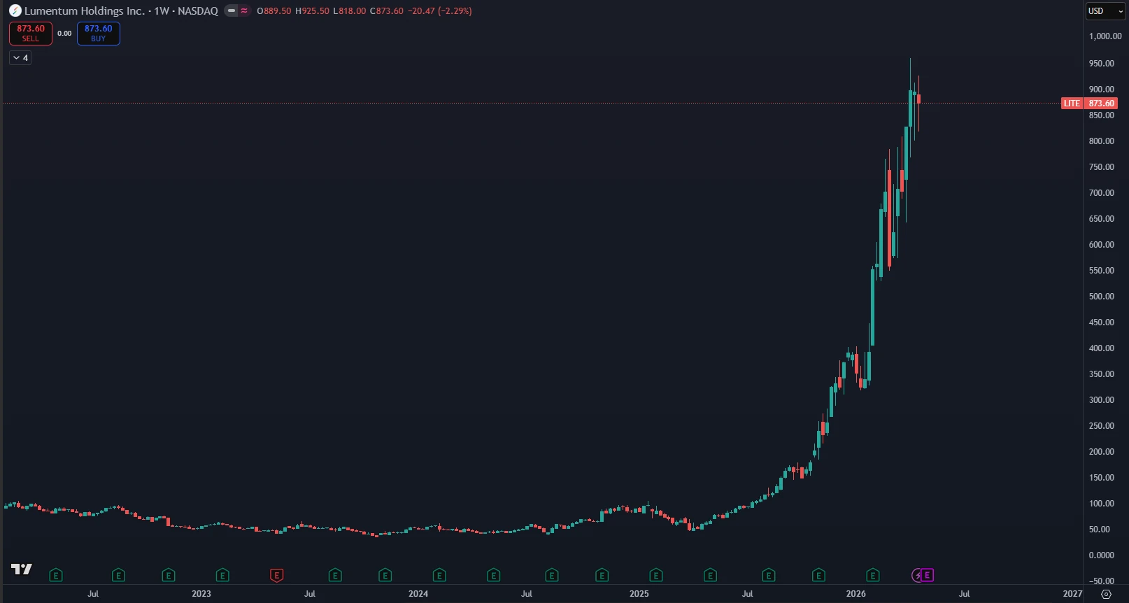 Druhé najziskovejšie akcie LITE. Zdroj: tradingview.com