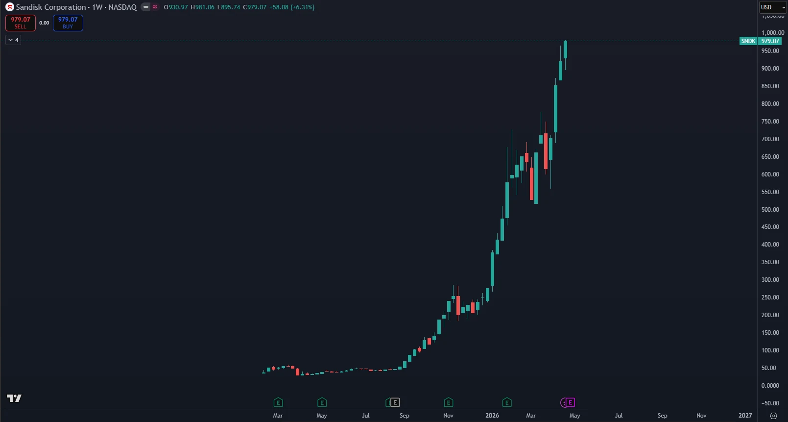 Najziskovejšie akcie SNDK. Zdroj: tradingview.com