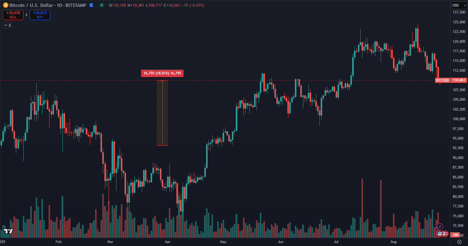 Bitcoin v roku 2025 prekonal 124 500 dolárov. Zdroj: tradingview.com