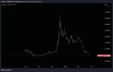Kryptomena Cronos, bez ohľadu na rastúci alebo klesajúci sentiment na trhu, patrí k stabilným altcoinom, ktoré si dlhodobo držia hodnotu a rastú. Po veľkom náraste v závere minulého roka o 400 % tento altcoin zažíva veľký pokles a cena sa vrátila na silný support, ktorý drží niekoľko rokov. Pokiaľ niekto hľadá kryptomenu na zaujímavej cene po poklese, tak CRO je vhodný kandidát.
