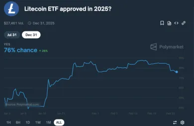 Nárast na trhu vyplýva z rastúcej predpovede o nadchádzajúcom ETF Litecoinu. Platforma sociálnych médií Polymarket naznačuje, že šance na schválenie ETF vzrástli na 76 %.