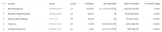 Verejné firmy držiace najviac Bitcoinov. Zdroj: Coingecko
