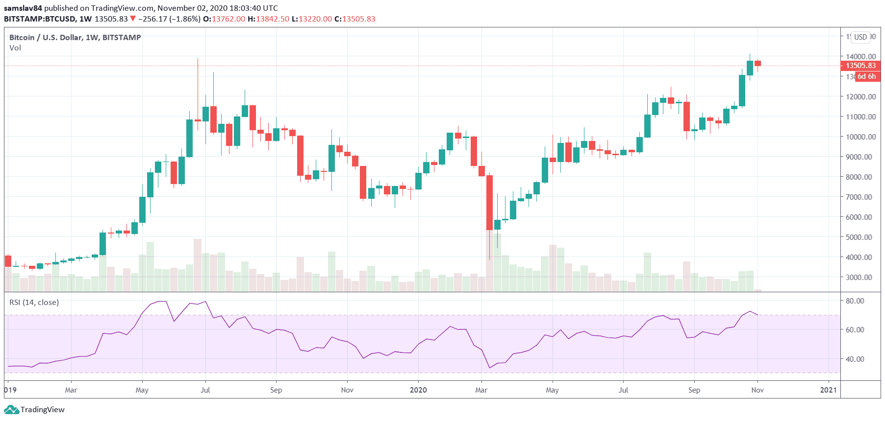 Trh s kryptomenami po víkende mierne klesá. Bitcoin sa z tohtoročného maxima na hladine 14 100 $ vrátil pod 13 500 $ a zdá sa, že rallye nateraz skončilo. Traderi začínajú hovoriť o začiatku krátkeho medvedieho trhu a očakávajú väčší pullback. Z dlhodobého hľadiska je však Bitcoin extrémne bullish, čo podporujú aj silné fundamenty.