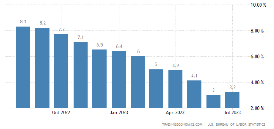 Aktuálne výsledky CPI potvrdili, že ešte nie je ten správny čas v prísnej menovej politike poľaviť. Inflácia v USA dosiahla v júli úroveň 3,2 % a zaznamenala tak prvýkrát po roku nárast od jej júnovej trojpercentnej hladiny.