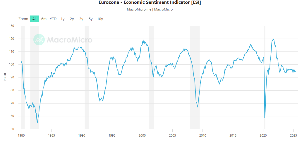 Európsky index spotrebiteľskej dôvery. Zdroj: macromicro.me