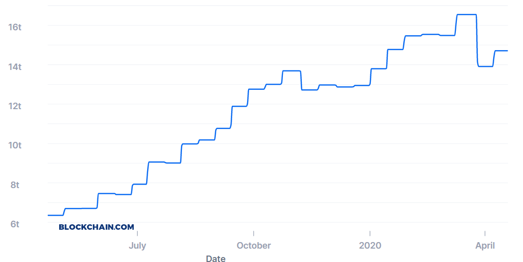 Bitcoin pred dvoma týždňami zaznamenal najväčší prepad obtiažnosti za posledných 8 rokov. Pokles o 16% sme tu naozaj ešte nevideli. Môže za to spomínaný halving a dump na 3700 $ z 12. marca. Situácia sa však upokojila a mineri sa vrátili, aby rýchlo vyťažili posledné bloky s obmenou 12,5 BTC.