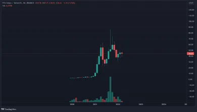 Hoci je token burzy FTX, FTT, aktuálne v korekcii, mesačný graf ukazuje stále vyššie low. Dlhodobo má token preto potenciál rásť. Zdroj: Tradingview