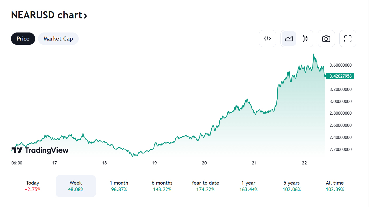 Protokol NEAR nedávno prijal Bitcoin Inscriptions, čo viedlo k výraznému nárastu transakcií v blockchaine. Toto prijatie pozitívne ovplyvnilo príjmy a spoločenský objem, čo naznačuje rastúci záujem a angažovanosť v rámci komunity.