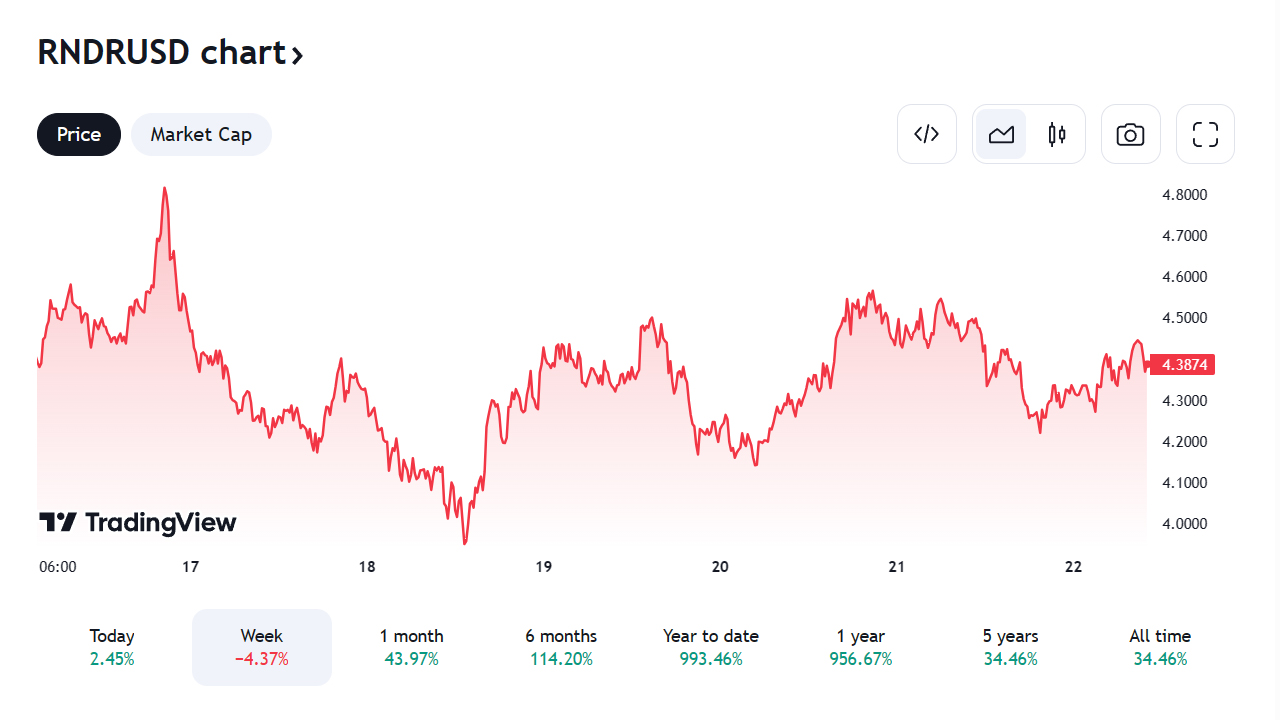 Render: Zažil výrazný nárast, čo naznačuje vysokú dôveru trhu.