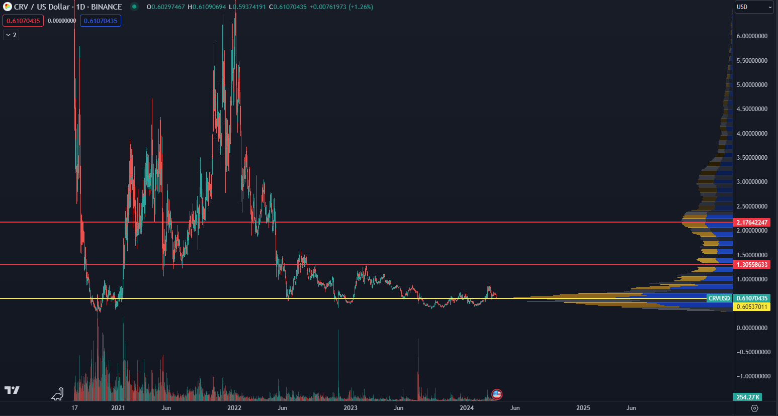 Token CRV sa momentálne nachádza v akumulačnej zóne a napriek tomu, že trh začiatkom roka prudko rástol, CRV stále stagnovalo. Otvára sa priestor na vyššie zhodnotenie, pričom budeme sledovať cenové ciele na úrovni 1,30 a 2,17 dolárov. V čase písania sa token obchoduje na 0,61 dolárov a trhová kapitalizácia dosahuje 716 miliónov dolárov.