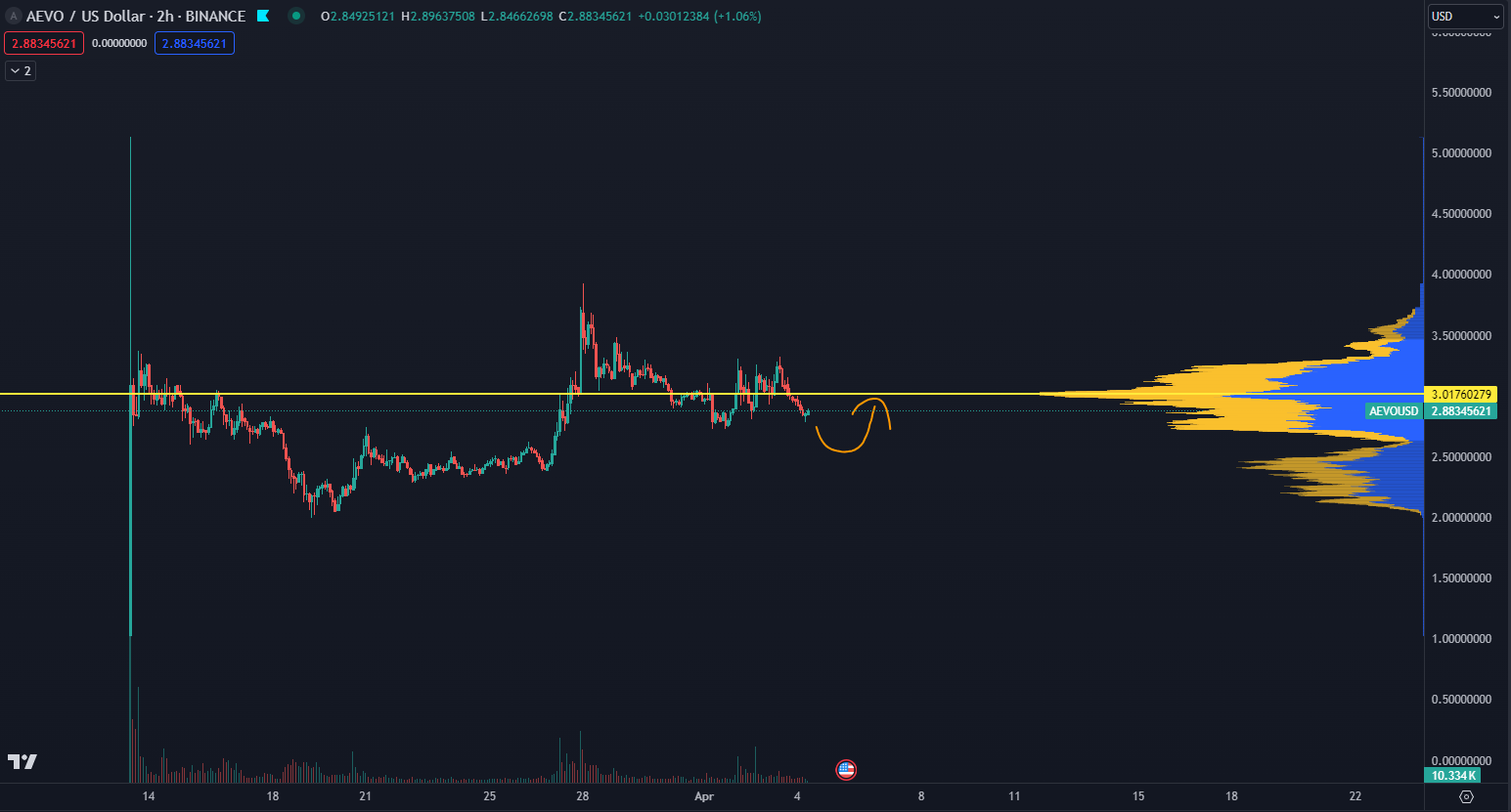 Volatilita tokenu AEVO sa viac menej po uvedení na burzu stabilizovala a momentálne bude ukončovať krátkodobú korekciu. Celý graf aktuálne tvorí akumulačnú zónu, po ktorej môže nastať obdobie bullrunu. Trhová kapitalizácia kryptomeny je 318 miliónov dolárov, z čoho až 68 % predstavuje denný objem obchodu. Cena sa nachádza na úrovni 2,88 dolárov.