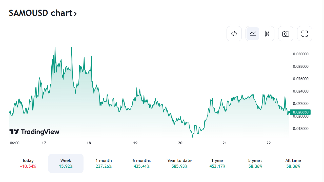 Pohľad na Samoyedcoin. Zdroj: tradingview.com
