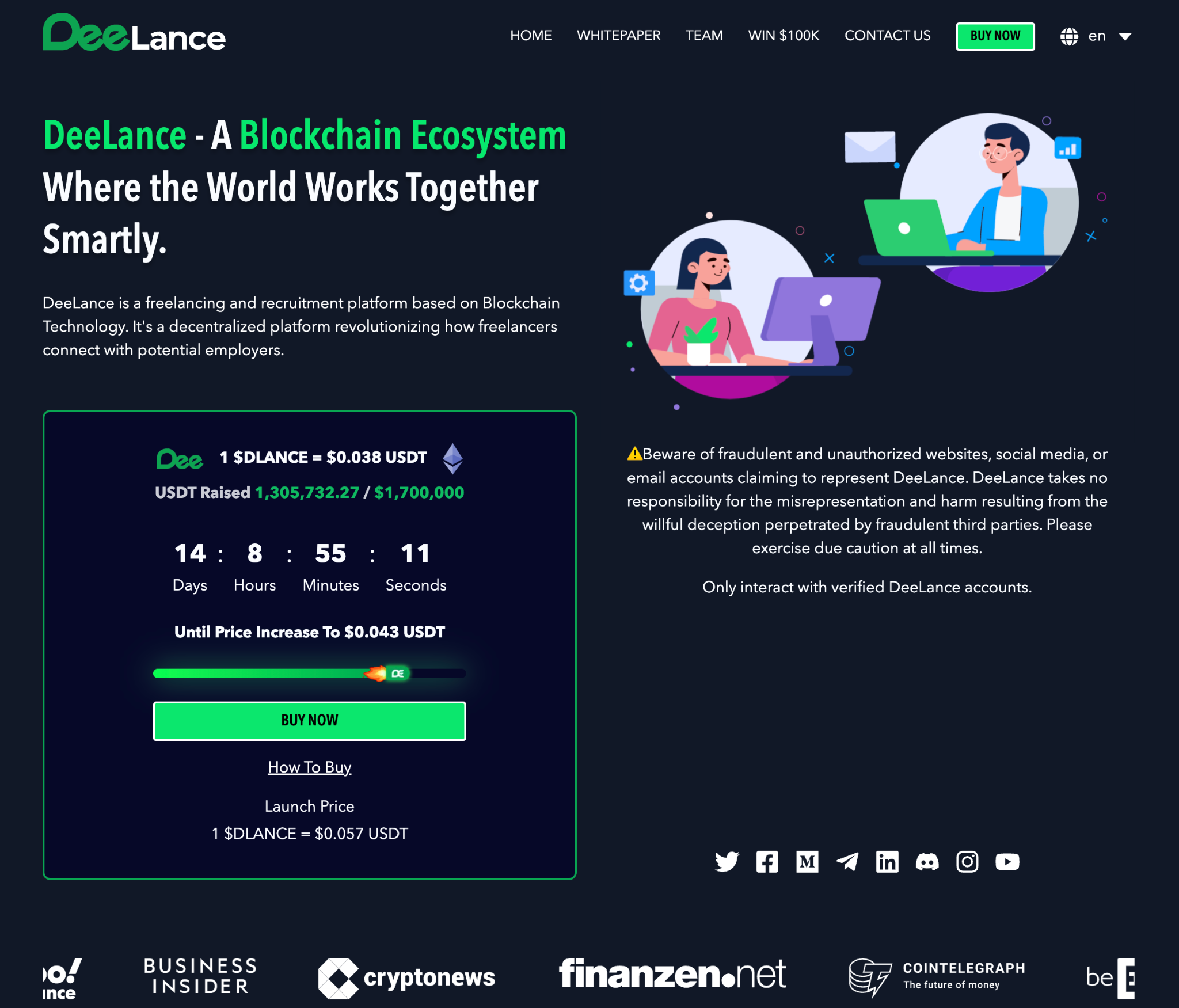Predpredaj Deelance sa pomaly končí, ale stále si môžete kúpiť tokeny $DLANCE. Keď bude token uvedený na burzu, cena tokenu $DLANCE bude 0,057 USDT, čo je stále 20 % nárast oproti súčasnej hodnote tokenu v predpredaji. Preto dlho neotáľajte a investujte do kryptomeny s veľkým potenciálom zarobiť v roku 2023 až 30x!