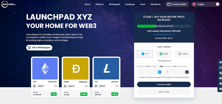 3. Launchpad XYZ – platforma, ktorej cieľom je spojiť to najlepšie z ekosystému Web3 do jedného používateľsky prívetivého portálu