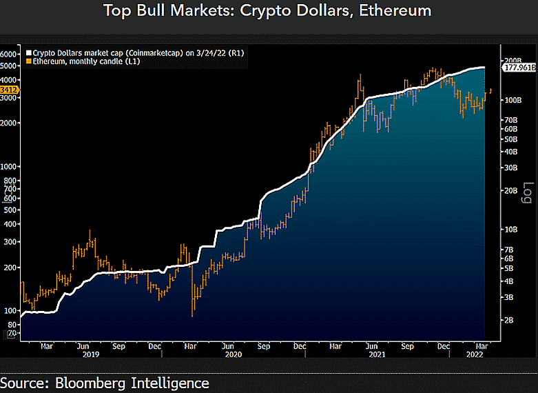 Jasným lídrom je Ethereum, teda druhá najväčšia svetová kryptomena podľa celkovej trhovej kapitalizácie. Ak ste fanúšikom tejto kryptomeny, asi viete, čo všetko nás v najbližšom období čaká. Za spomenutie stojí zrejme jedna z najočakávanejších udalostí posledných rokov, a to prechod ETH na konsenzus Proof-of-stake. Nárast predpovedá aj populárny analytik agentúry Bloomberg Mike McGlone: