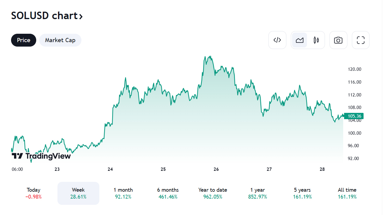 Solana vykazuje pozoruhodný rast, najmä vo svojich ekosystémoch DeFi a NFT. Sieť zaznamenala prudký nárast aktivity používateľov a v objemoch decentralizovanej výmeny predbehla Ethereum.