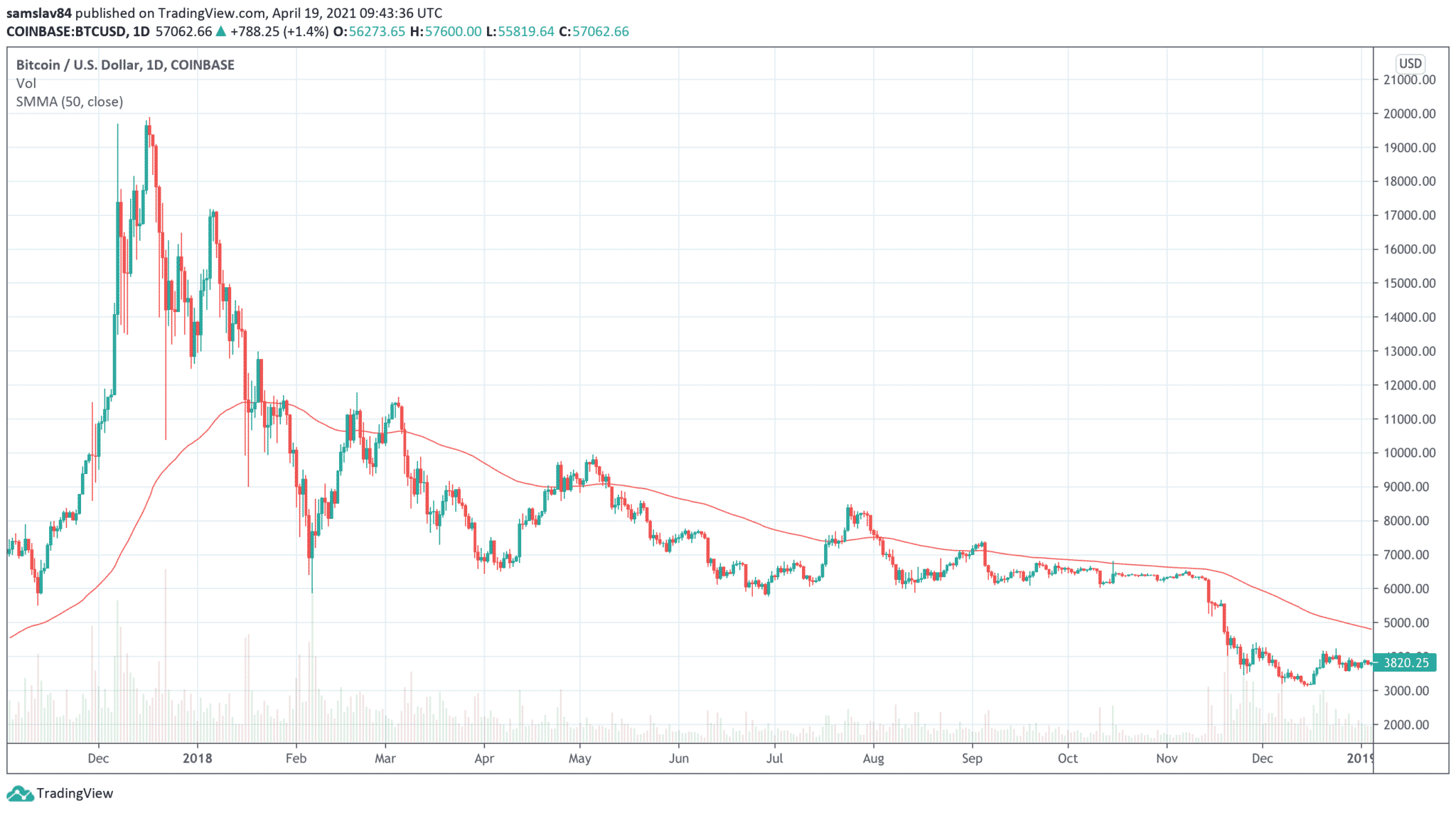 Prudký prepad pod SMA 50 však už bude znamenať začiatok bear marketu. Bolo tomu tak napríklad v roku 2017: