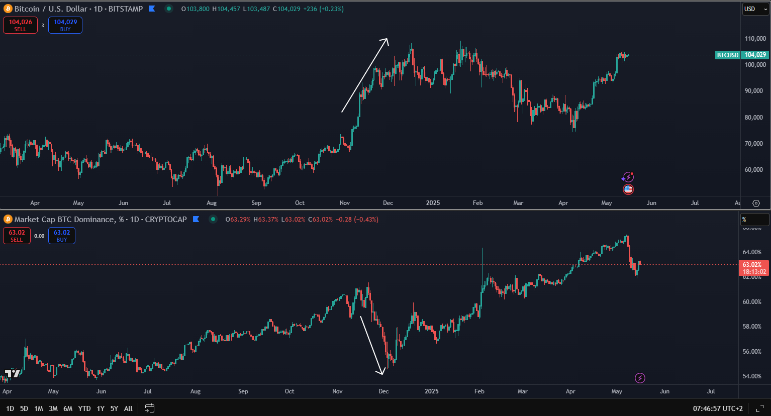 Pokles dominancie BTC nemusí znamenať koniec cyklu