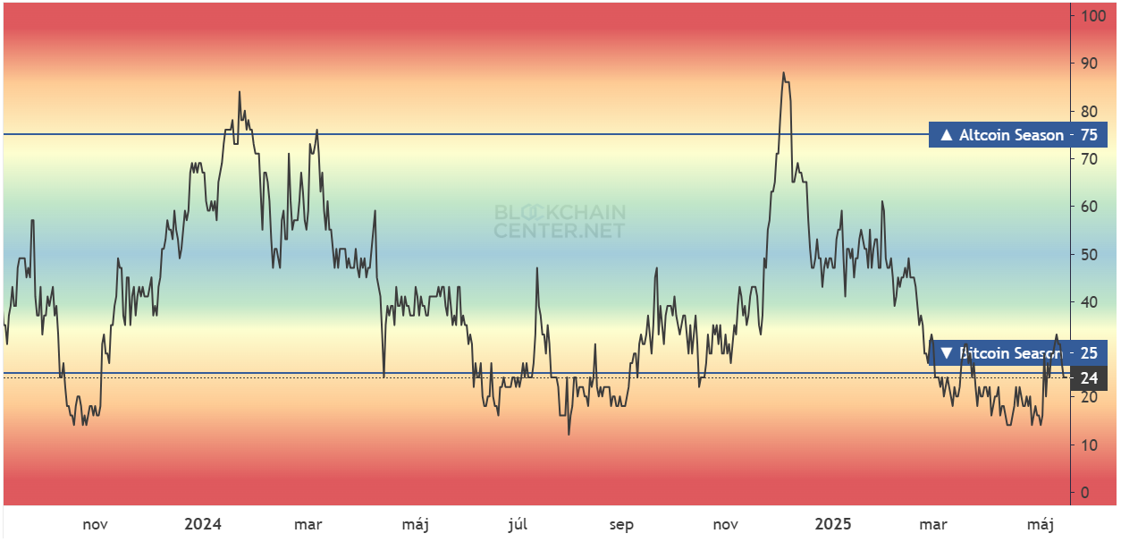 Napriek poklesu dominancie BTC však zatiaľ nie sme v altcoinovej sezóne. Index altcoinovej sezóny podľa údajov Blockchain Center ostáva na nízkych úrovniach a trhom stále dominuje Bitcoin. Historicky sa po takýchto krátkych obdobiach eufórie objavujú korekcie, ako sme videli v prvom kvartáli 2025. Tie však nemusia signalizovať koniec cyklu, ale skôr jeho zdravé ochladenie.