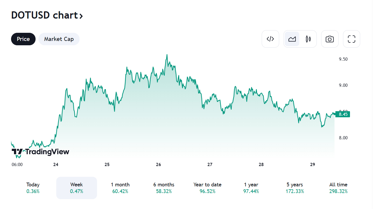 Polkadot si získava pozornosť pre svoju silnú decentralizáciu a aktívny rozvoj ekosystému. Token vykazuje pozitívnu dynamiku, pričom v posledných mesiacoch zaznamenal výrazné zisky.