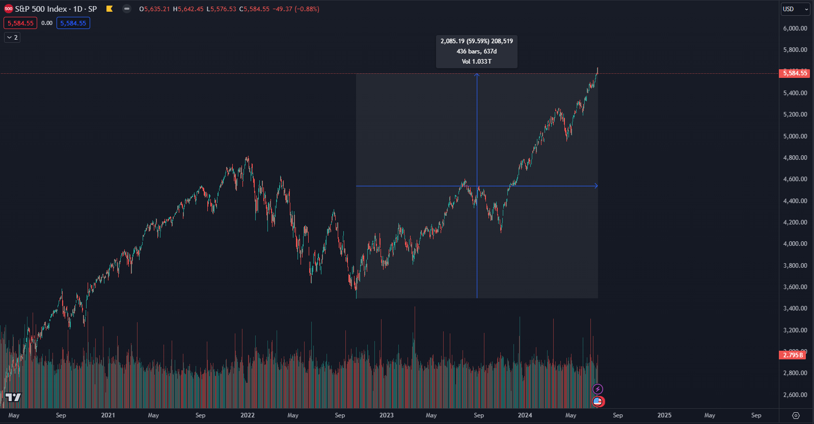 Zhodnotenie SPX. Zdroj: TradingView