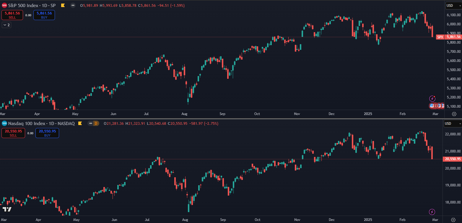 Korekcia trhu je zrejme len otázka času a je nevyhnutná. Ide o prirodzený cyklus trhov, ktorý môže ovplyvniť aj ďalší vývoj. V súčasnosti čelia akcie výraznému cenovému prepadu, keďže za posledných 10 dní klesol index S&P 500 o 4,60 % a Nasdaq 100 o 7,35 %.
