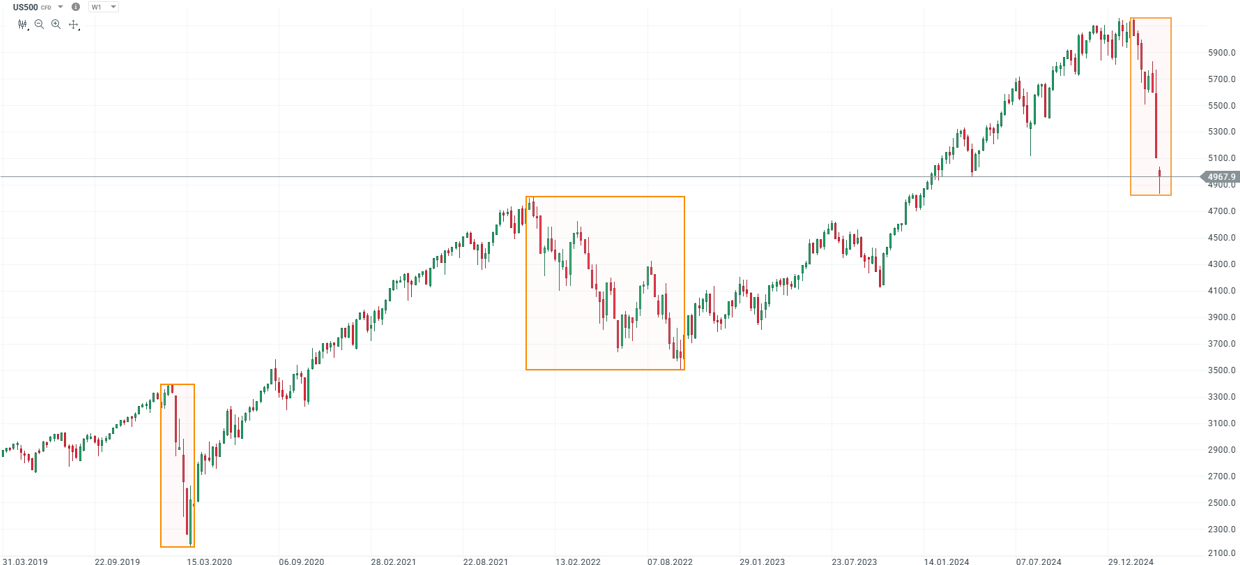 PR článok spoločnosti XTB. Posledné dni priniesli na svetové akciové trhy značnú neistotu. Ak ste investorom alebo aktívne sledujete finančné trhy, určite ste zaznamenali prudké výkyvy, ktoré pripomínajú krízové obdobia z minulosti. Na trhoch začína prevládať panika. Je však oprávnená? Sú tieto poklesy naozaj horšie ako tie, ktoré sme zažili počas pandémie v roku 2020 alebo energetickej a inflačnej krízy v roku 2022?