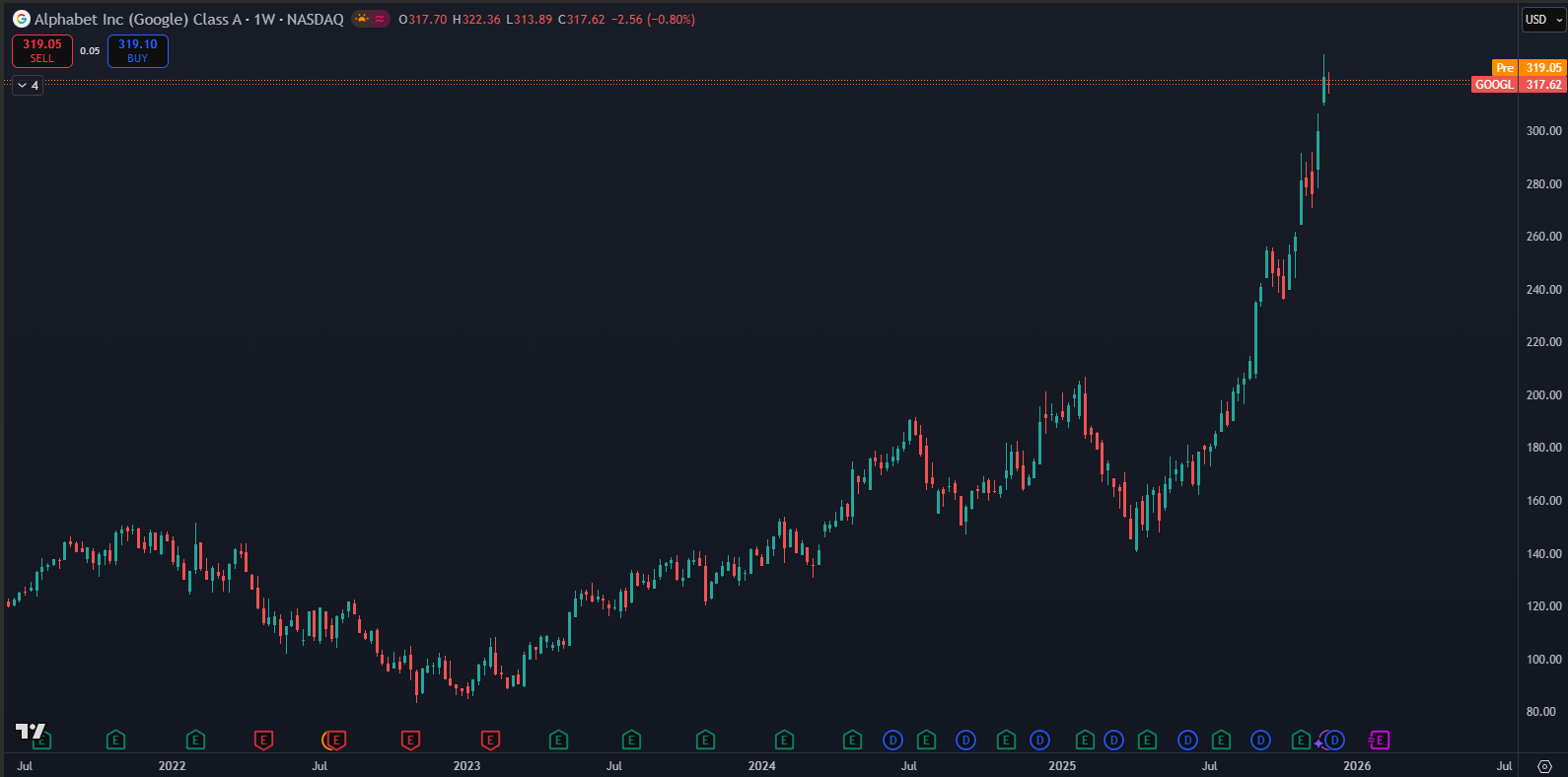 Akcie Alphabet za posledný rok zažili impozantný rast, keď ich hodnota vzrástla o 85 %, čo je výkon, aký sme v posledných rokoch málokedy videli. Tento dynamický nárast odráža silné fundamenty spoločnosti, najmä v oblasti umelej inteligencie, cloudových služieb a dominancie YouTube, ktoré podporujú stabilný prílev príjmov a rast ziskov.