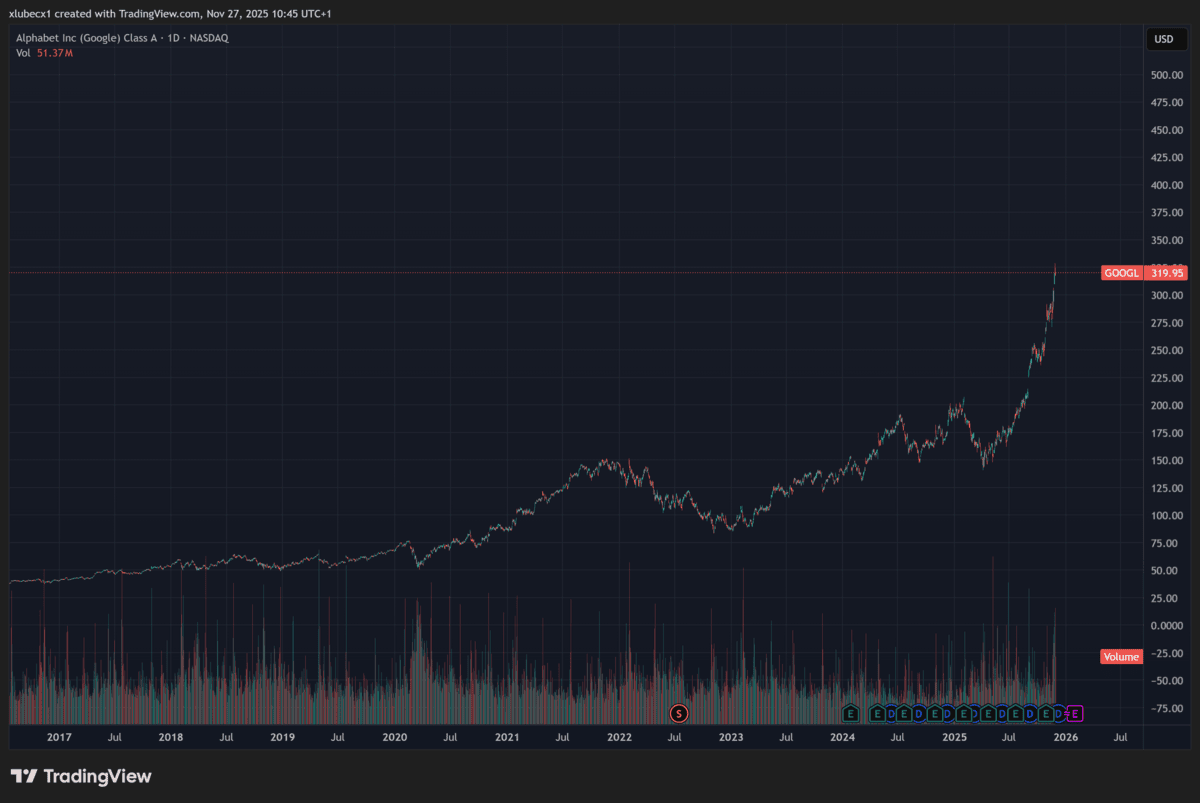Za týmto rastom stojí najmä optimizmus investorov ohľadom novej AI platformy Gemini 3 a vlastných čipov TPU (Tensor Processing Units), ktoré sa čoraz viac považujú za silnú konkurenciu pre GPU čipy Nvidie.