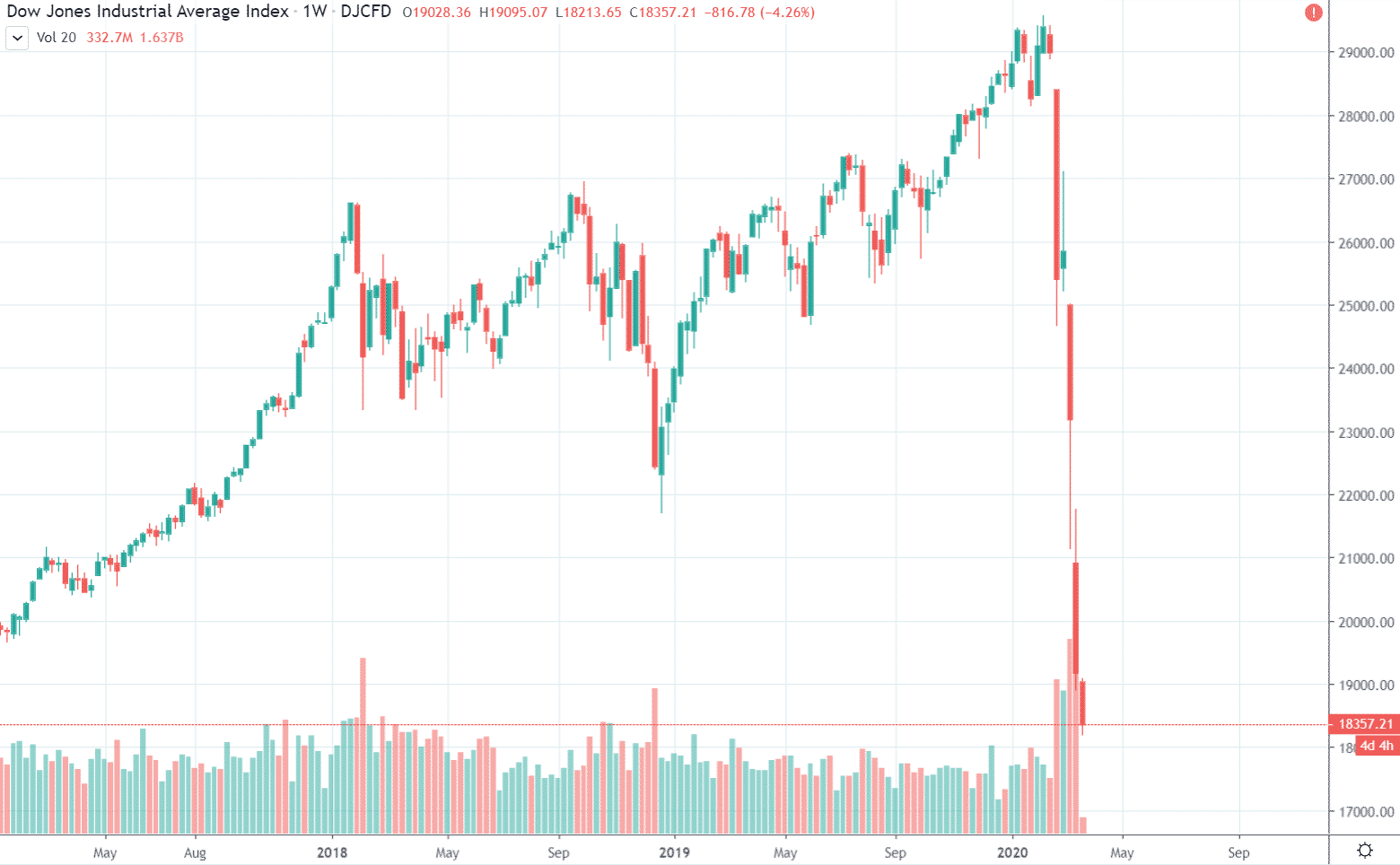 Celkovo indexy za posledný mesiac spadli o takmer 40%. Pre porovnanie, počas krízy v roku 2008 to bolo takmer 60% (z 14 200 bodov na cca 6450 bodov). Vtedy však indexy padali podstatne pomalšie a nevznikali tak obrovské gapy.
