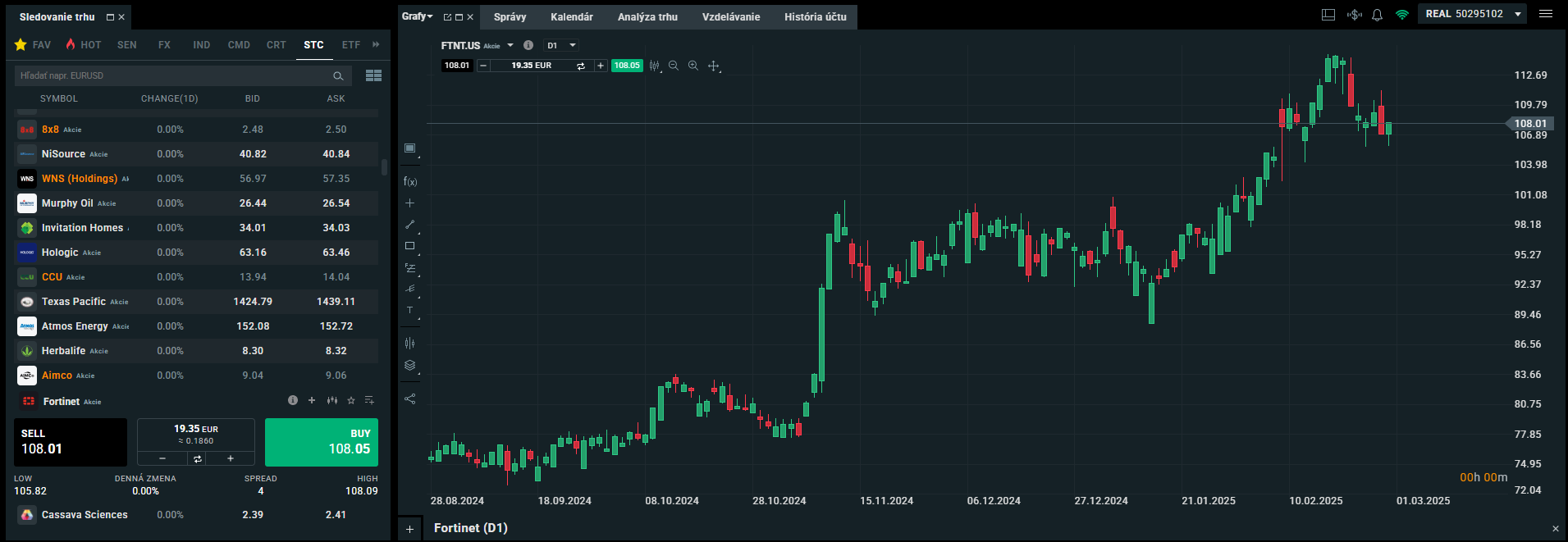 Akcie spoločnosti Fortinet môžete už dnes zakúpiť na populárnej platforme XTB, ako vidíte na obrázku nižšie.