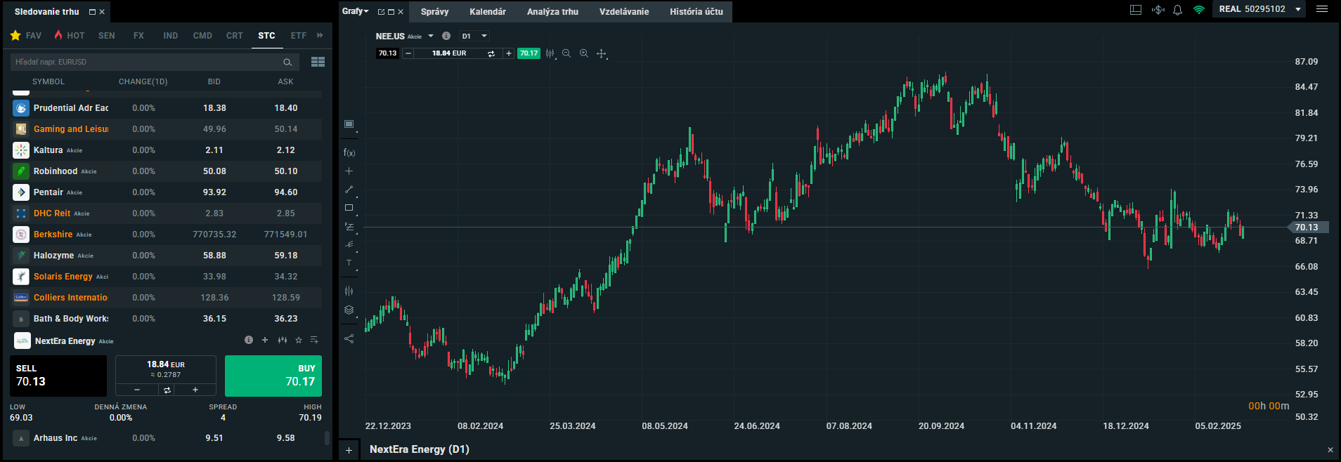 Akcie spoločnosti NextEra Energy môžete už dnes zakúpiť na populárnej platforme XTB, ako vidíte na obrázku nižšie.