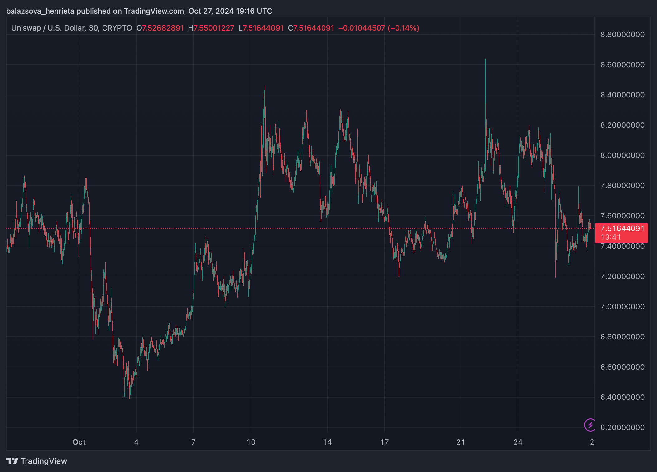 Uniswap (UNI) sa obchoduje medzi 7,10 a 8,48 dolármi, s 13,89 % nárastom za posledný mesiac. 10-dňové a 100-dňové kĺzavé priemery sú blízko na 8,00 a 7,88 dolároch, naznačujúc vzostupnú dynamiku. Najbližšia úroveň odporu je 9,22 dolára; ak UNI prelomí túto hranicu, mohol by dosiahnuť 10,60 dolára, predstavujúc potenciálny zisk viac ako 25 % od súčasného rozsahu. Index relatívnej sily je na 42,46, indikujúc, že minca nie je prepredaná. S blížiacou sa sezónou altcoinov by UNI mohol čoskoro zažiť významný rast.