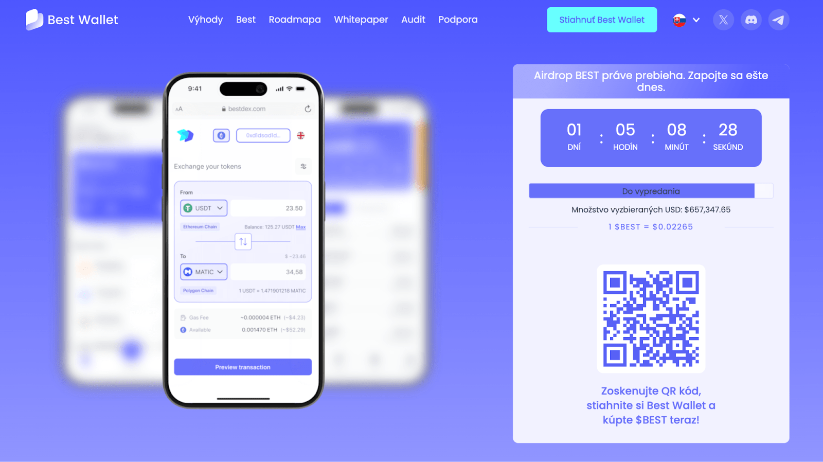 Popri prednostnom predpredaji a nižších transakčných poplatkoch sa budete môcť zapojiť aj do airdropu voľných tokenov a priamo sa podieľať na budúcom vývoji ekosystému Best Wallet.