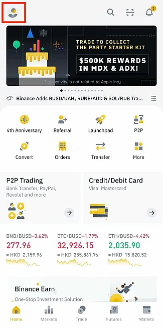 V prvom rade si treba stiahnuť aplikáciu burzy Binance. Túto aplikáciu okrem pracovania s Binance gift card môžeme použiť aj na obchodovanie a nákup kryptomien. Samozrejme, je potrebné mať na burze Binance účet. Ten si môžeš založiť cez náš link a získaš tak doživotnú zľavu na poplatky.
