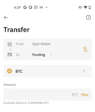Druhý krok je prevod prostriedkov na tzv. funding účet. To urobíš tak, že pôjdeš do sekcie peňaženky a klikneš na Transfer, resp. prevod. Napríklad zo spotovej alebo futures peňaženky je potrebné previesť kryptomeny na funding účet.